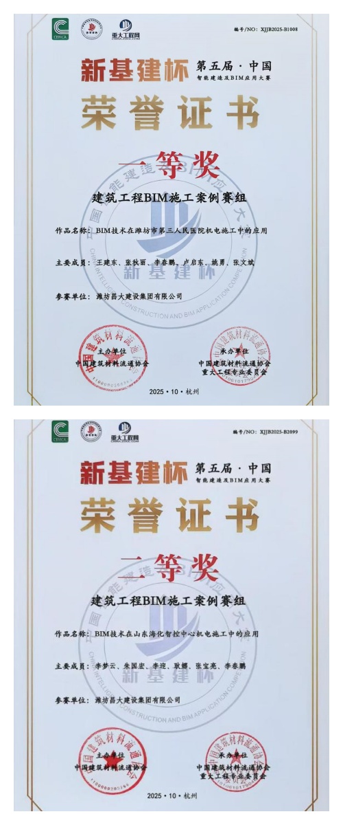 據(jù)悉,本屆大賽采取企業(yè)自愿參賽機(jī)制,經(jīng)過(guò)嚴(yán)格的形式審核、在線評(píng)審、視頻答辯及結(jié)果公示等環(huán)節(jié),最終確定獲獎(jiǎng)成果。其中,由集團(tuán)第二安裝公司申報(bào)的《BIM技術(shù)在濰坊市第三人民醫(yī)院機(jī)電施工中的應(yīng)用》和《BIM技術(shù)在山東?;强刂行臋C(jī)電施工中的應(yīng)用》分別榮獲一等獎(jiǎng)和二等獎(jiǎng)。